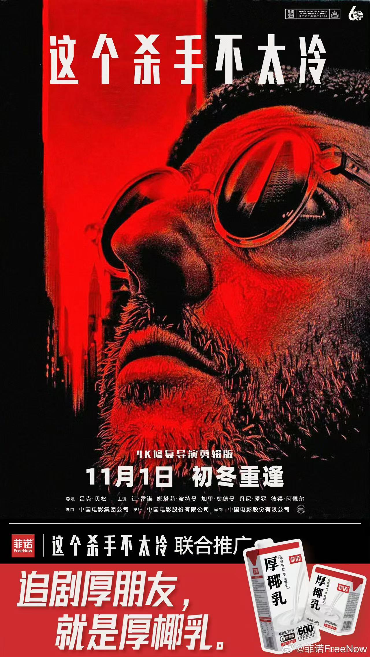 近期,《这个杀手不太冷》4K修复导演剪辑版首次登陆内地大银幕,椰基植物饮品牌菲诺以“追剧厚朋友吗,就是厚椰乳”陪伴大家在这个初冬温暖观影。